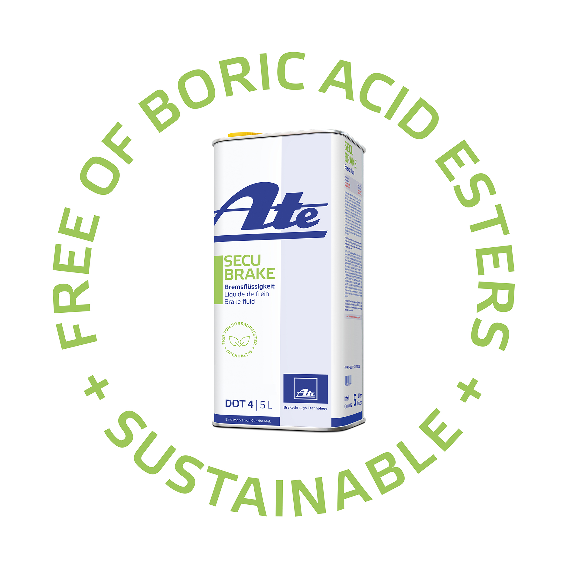 ATE SecuBrake est exempt de matières dangereuses soumises aux exigences d'étiquetage et est produit avec des matières premières renouvelables, ce qui démontre l'engagement d'ATE en faveur d'une mobilité respectueuse de l'environnement. Ce liquide de frein innovant simplifie la vie quotidienne des ateliers, car il ne nécessite aucune mesure de protection légale pour la manipulation et le stockage de liquides dangereux.