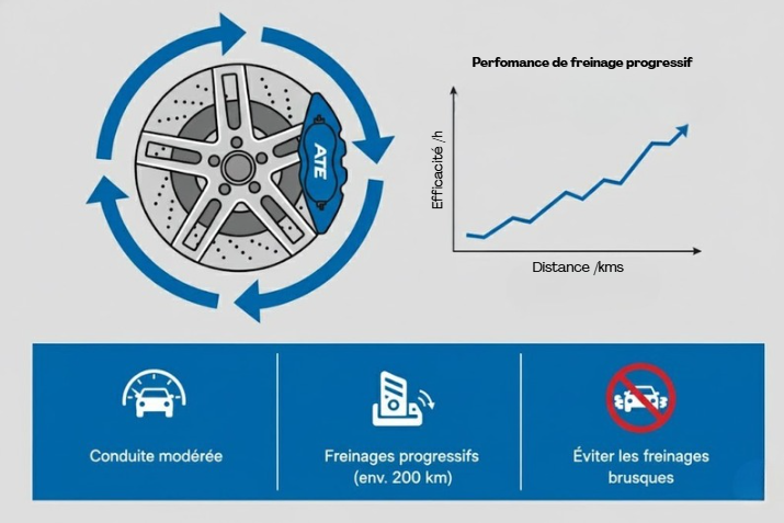 Après l'installation, le rodage des plaquettes de frein est la prochaine étape essentielle :